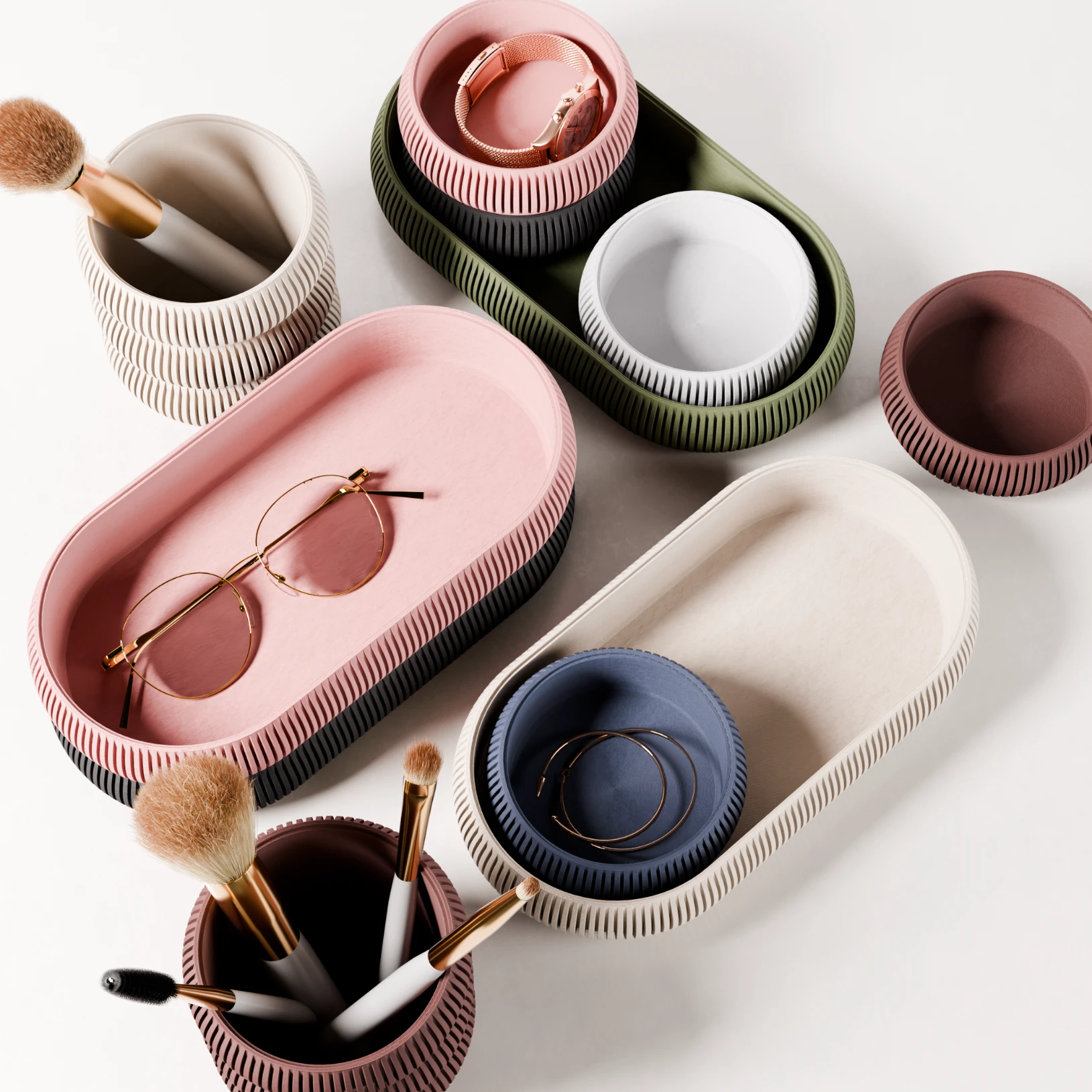 Duurzaamheid staat bij ons centraal. Onze bureau organizers worden vervaardigd uit milieuvriendelijke materialen, zoals gerecycled kunststof, en geproduceerd met behulp van geavanceerde 3D-printtechnologie. Dit innovatieve proces zorgt voor unieke en prachtige ontwerpen, terwijl het verspilling en overproductie vermindert. Onze organizers zijn niet alleen een verrijking voor je interieur, maar dragen ook bij aan een duurzamere toekomst voor de planeet.
