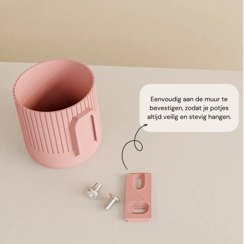 Elke pot wordt lokaal 3D-geprint van lichtgewicht, gerecycled biokunststof dat verrassend stevig is. Verkrijgbaar in verschillende kleuren en twee maten, zodat je jouw plantenmuur perfect kunt afstemmen op jouw stijl.
