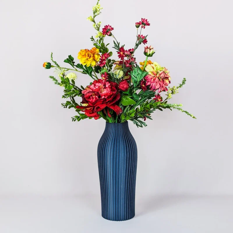 Al onze zijden boeketten worden geleverd op een duurzaam geproduceerde, 3D-geprinte vaas. Deze vazen zijn gemaakt van milieuvriendelijke materialen en combineren modern design met een ecologisch verantwoord productieproces. Wil je liever een andere kleur of type vaas? Neem dan gerust contact met ons op! Omdat alle vazen handgemaakt en op bestelling zijn, kunnen we ze aanpassen naar jouw smaak!