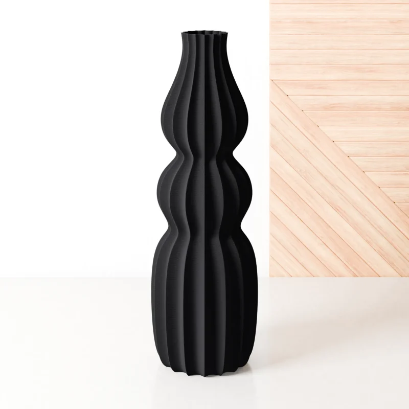 Het leukste? Deze smalle vaas is lokaal 3D-geprint van duurzaam, gerecycled kunststof – een bewuste keuze voor designliefhebbers met oog voor de planeet.
