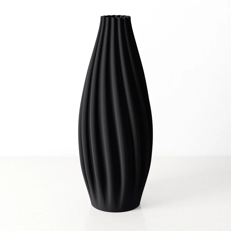 Het leukste? Deze moderne vaas is lokaal 3D-geprint van duurzaam, gerecycled kunststof – een bewuste keuze voor designliefhebbers met oog voor de planeet.